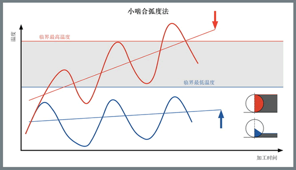 為銑削加工計算的補(bǔ)償因子指出了多種途徑來改變與刀具嚙合量有關(guān)的切削參數(shù),從而保持所需的加工溫度。如果溫度過低,則無法使刀具材料達(dá)到最大的韌性,同時還可能會形成積屑瘤(積屑瘤是導(dǎo)致切削刃斷裂或微崩的情況)。如果溫度過高,則會加快切削刃磨損或刀具變形。通過參數(shù)調(diào)整進(jìn)行補(bǔ)償可以平衡熱負(fù)荷與機(jī)械負(fù)荷,優(yōu)化刀具壽命和生產(chǎn)率。